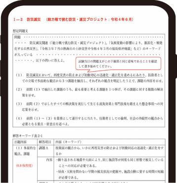「課題の解決策は国土交通省の政策をそのまま書く」など、筆記試験で合格点を取るために必要なノウハウ・テクニックを解説します。また、必須科目の予想テーマ(問題)と解答内容に盛り込むべき重要キーワードを収録した資料(PDF)付きで、これだけで必須科目を対策できます。