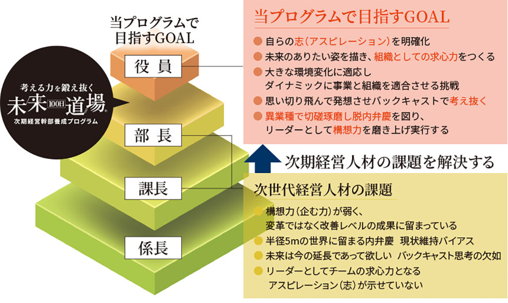 半径5mの視座しかない管理者の意識改革を図り、指示待ちではなく、自立的に考え抜き、企む力を醸成する講座、それが「未来100日道場」です。