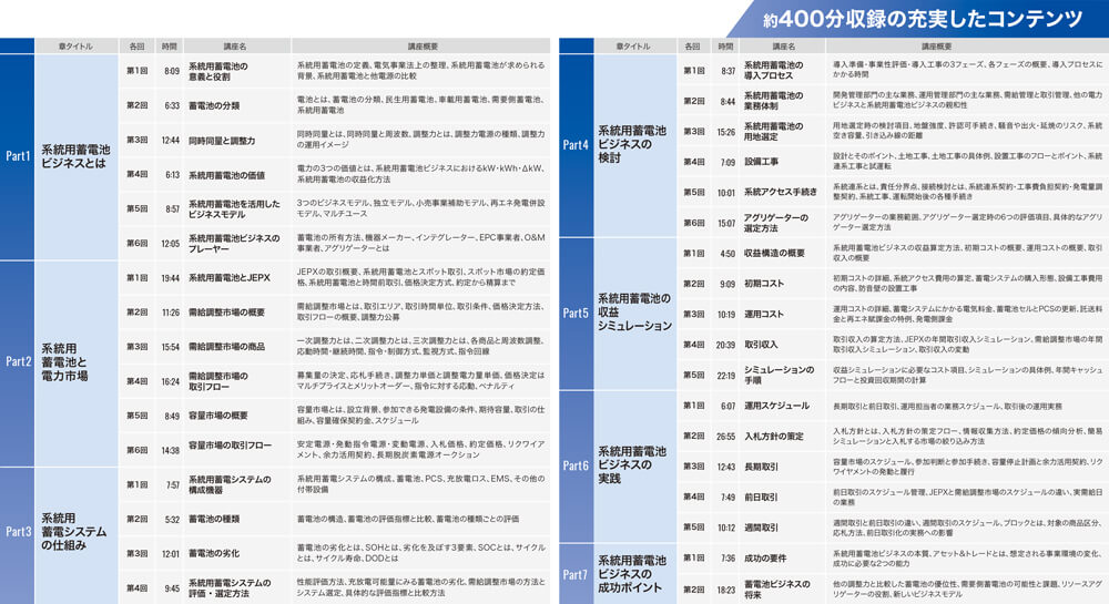 これから系統用蓄電池に参入する企業はもちろん、既に参入している企業も、最低限必要な基礎知識を学べます。